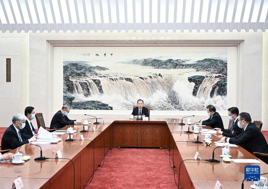 3月10日下午,十四届全国人大一次会议主席团常务主席第五次会议在北京人民大会堂举行。大会主席团常务主席赵乐际主持会议。新华社记者 燕雁 摄