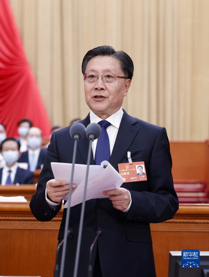 3月11日,十四届全国人大一次会议在北京人民大会堂举行第四次全体会议。王东明主持会议。