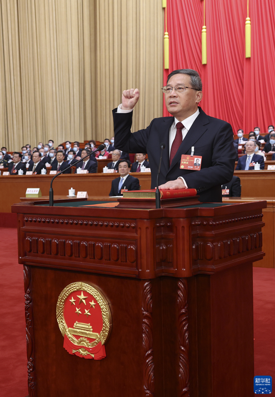 3月11日,十四届全国人大一次会议在北京人民大会堂举行第四次全体会议。这是新任国务院总理李强进行宪法宣誓。