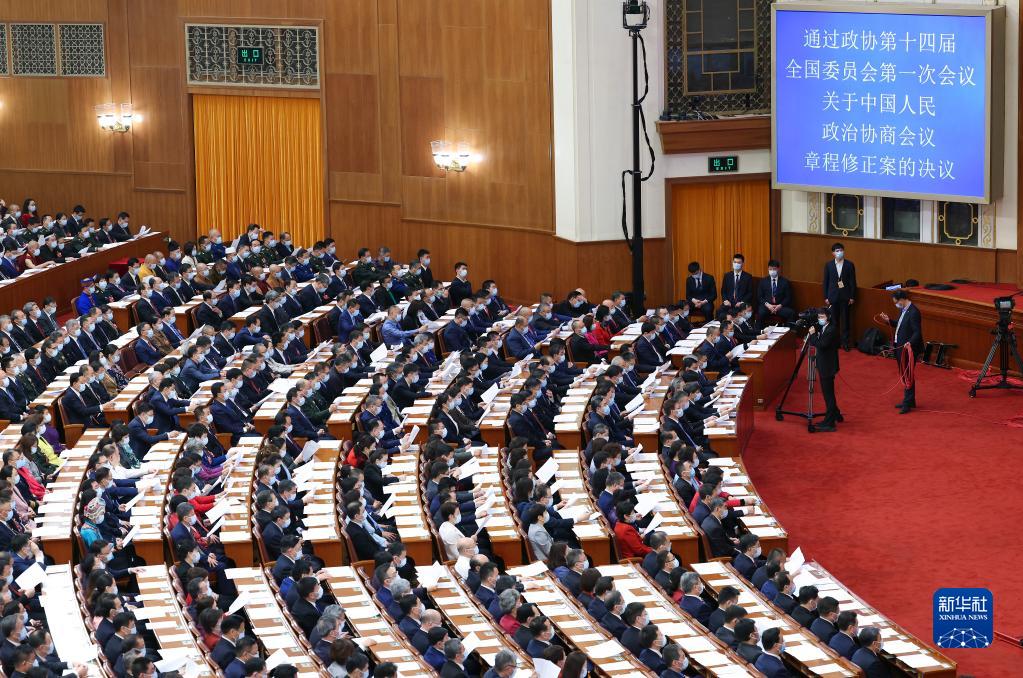 3月11日,中国人民政治协商会议第十四届全国委员会第一次会议在北京人民大会堂举行闭幕会。