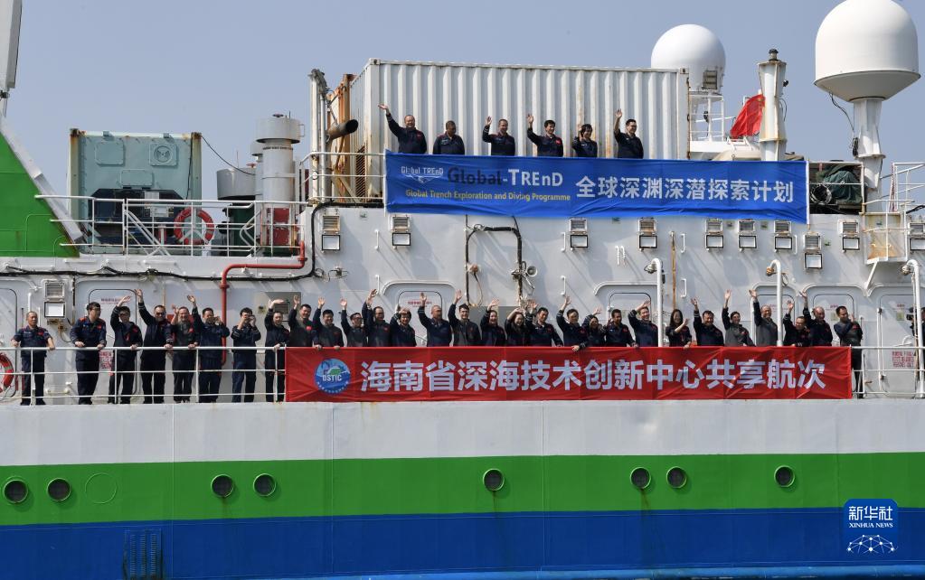 当日,“探索一号”科考船携“奋斗者”号全海深载人潜水器抵达三亚,圆满完成国际首次环大洋洲载人深潜科考航次任务。