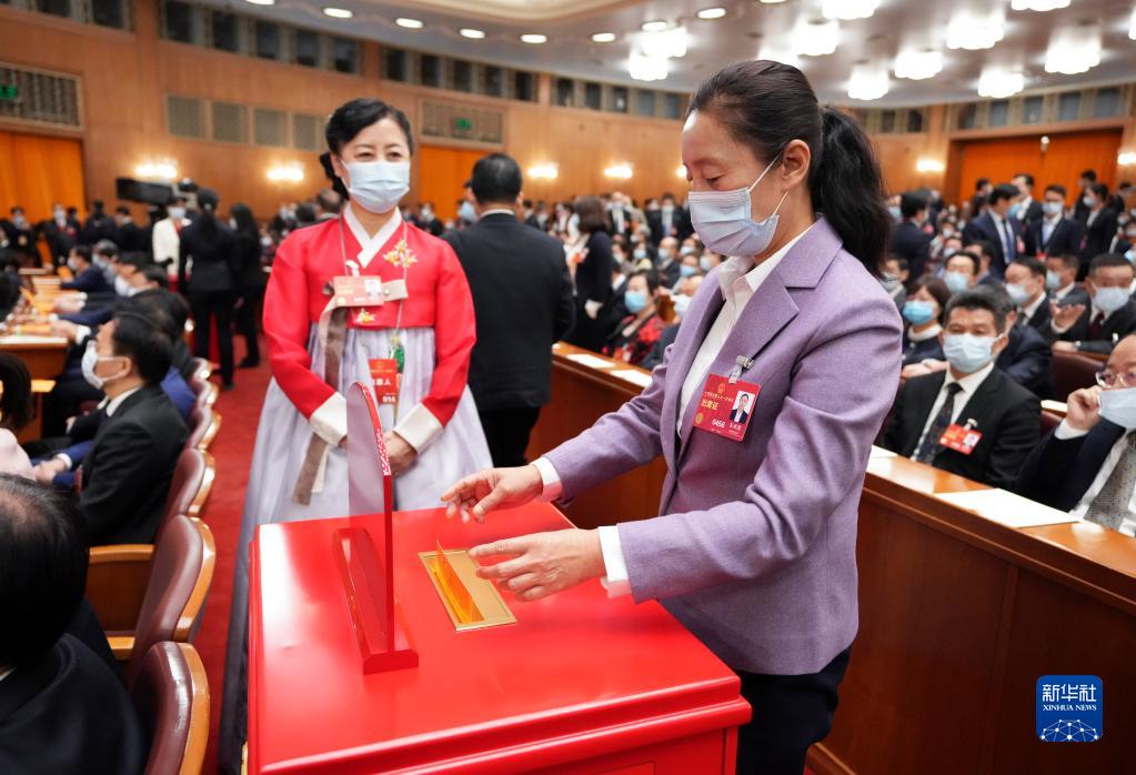 3月12日,十四届全国人大一次会议在北京人民大会堂举行第五次全体会议。这是代表在投票。