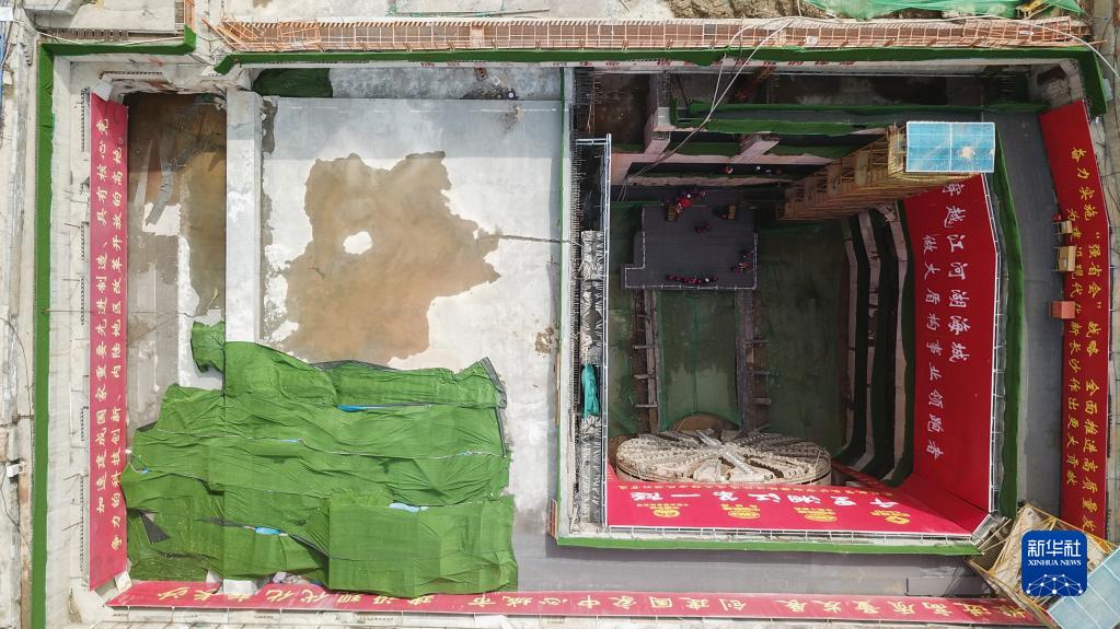 这是3月12日拍摄的长沙市湘雅路过江通道右线隧道贯通现场(无人机照片)。