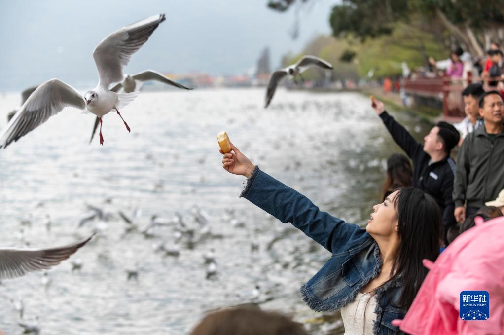 随着天气转暖,栖居春城昆明越冬的红嘴鸥陆续迁徙北返。不少游客到滇池边观鸥喂鸥,为红嘴鸥送行。