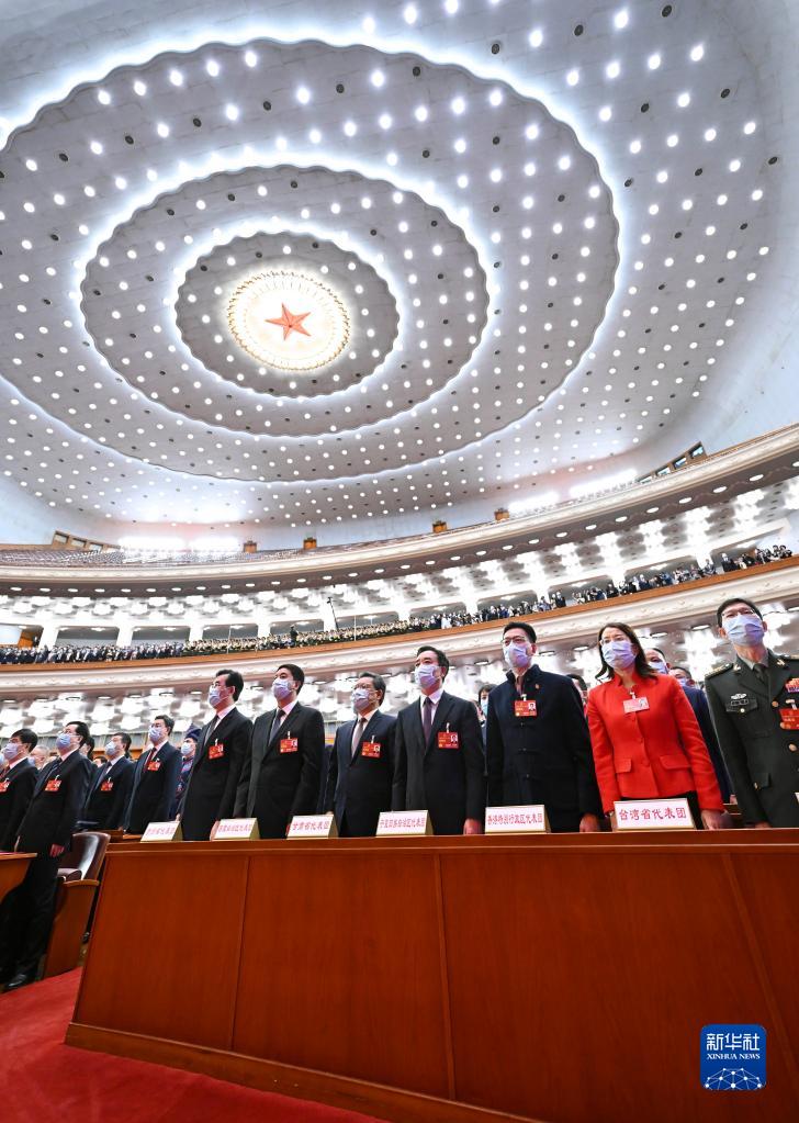 3月13日,第十四届全国人民代表大会第一次会议在北京人民大会堂举行闭幕会。这是代表们高唱国歌。