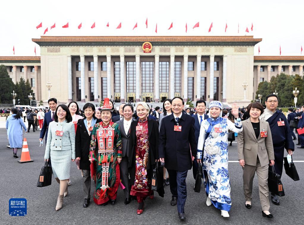3月13日,第十四届全国人民代表大会第一次会议在北京人民大会堂举行闭幕会。这是闭幕会后,代表走出人民大会堂。