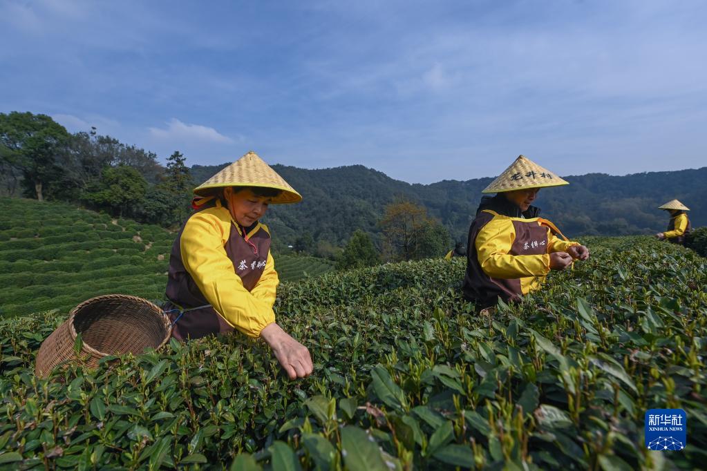 3月13日,龙井村的茶农在采摘西湖龙井“明前茶”。