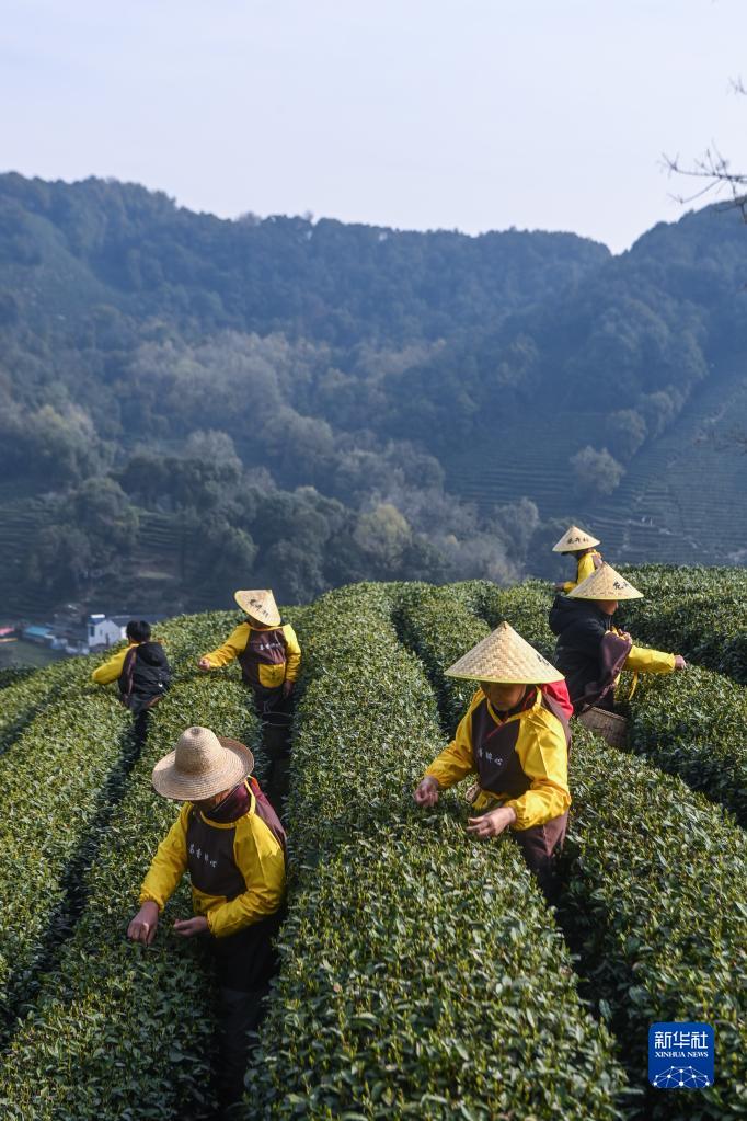 3月13日,龙井村的茶农在采摘西湖龙井“明前茶”。