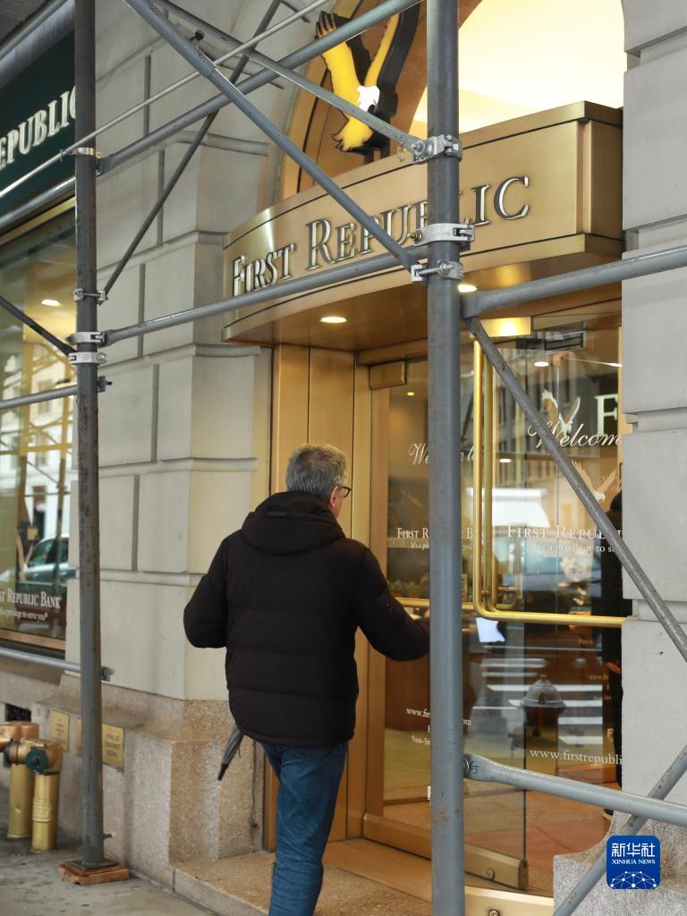 3月13日,在美国纽约,一名男子走进一家第一共和银行营业部。