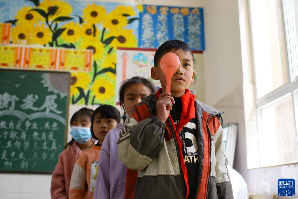 3月14日,在曲靖市沾益区白水镇岗路小学,学生进行视力测试。