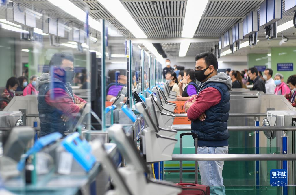 3月15日,外国旅客在深圳罗湖口岸入境检查大厅候检通关。