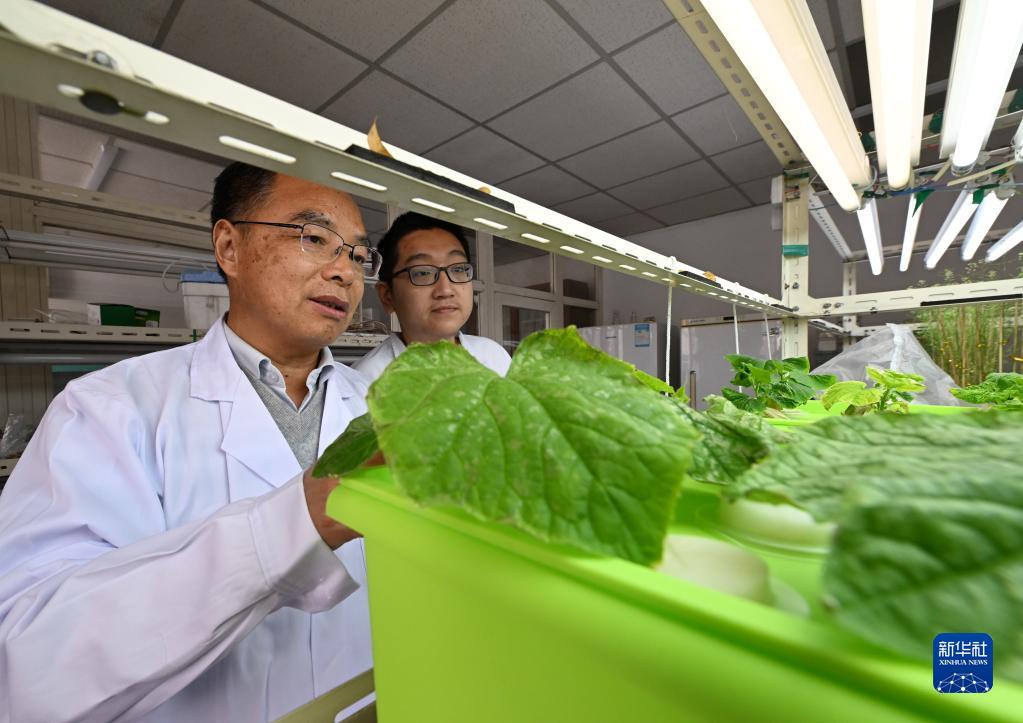 3月14日,在天津市农业科学院黄瓜研究所,杜胜利研究员(左)与研究生就试验黄瓜植株表现进行分析研讨。
