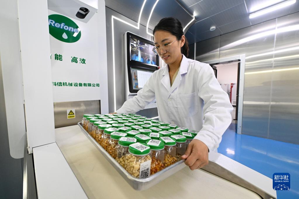 3月14日,在天津市农业科学院种质资源与生物技术研究所,科研人员将一盘玉米种质资源入库。