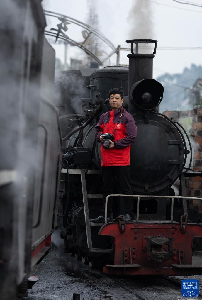 3月15日,“张火痴”在嘉阳小火车检修车间拍摄。