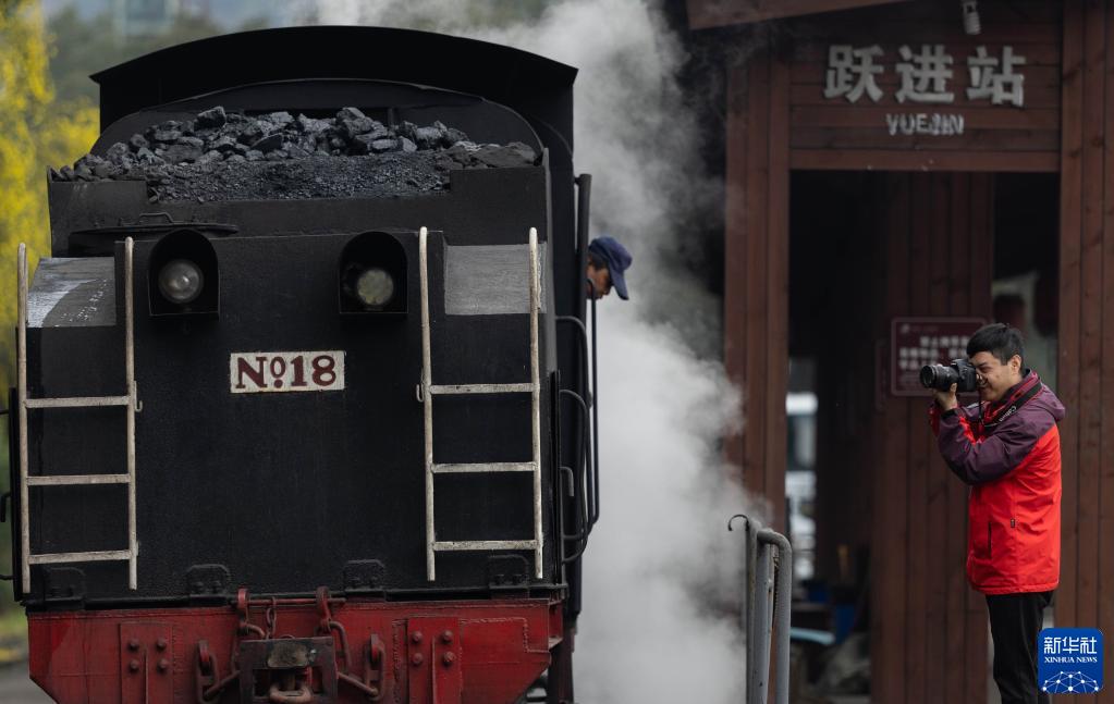 3月15日,“张火痴”在跃进站拍摄嘉阳小火车的蒸汽机车。
