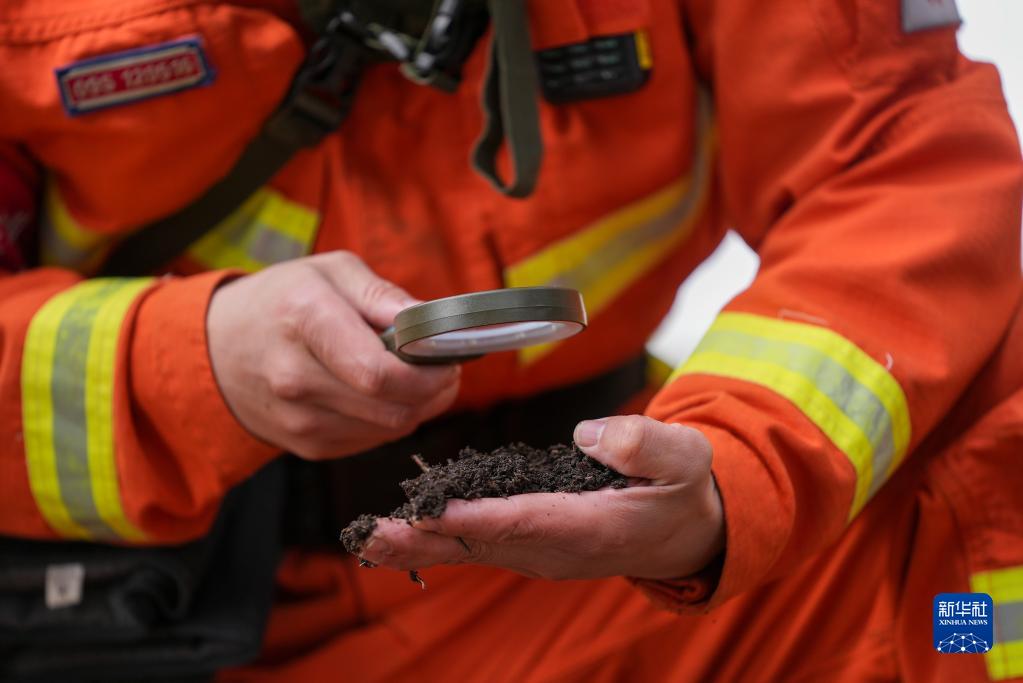 3月15日,巩留县森林消防大队一名指挥员通过仪器分析林下可燃物。