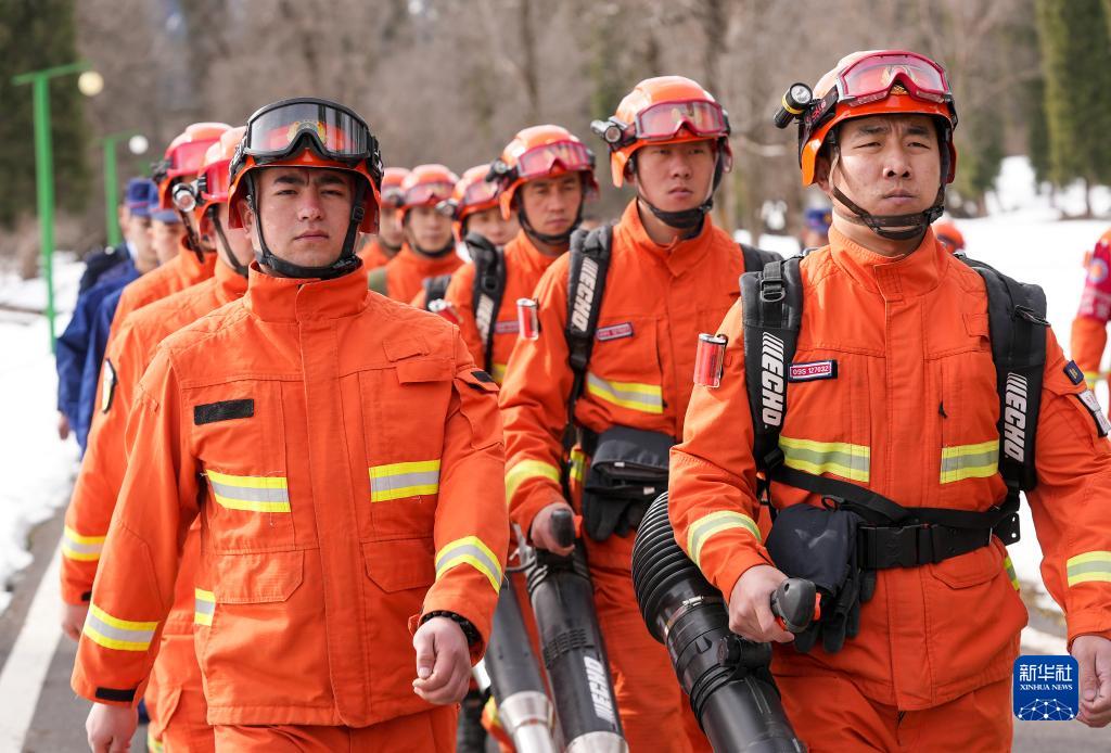 3月15日,巩留县森林消防大队联合当地多个部门的应急消防人员在库尔德宁林区内行进。