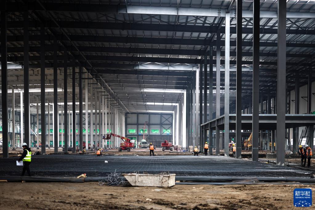 工人在一汽弗迪新能源项目建设现场施工作业(3月9日摄)。