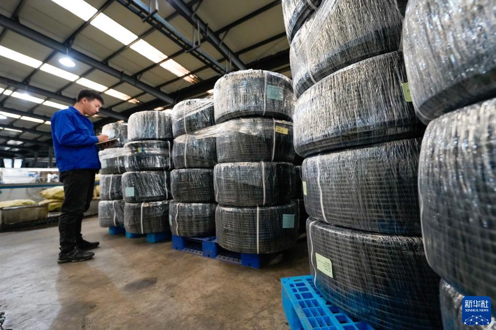 3月16日,玉田县一家农用管材生产企业工人在核对滴灌设备产品信息。