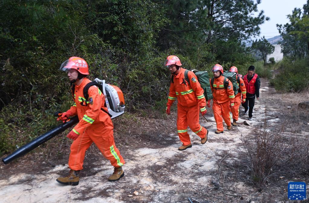 3月16日,道场乡综合森林火灾应急救援队队员和党员志愿者一同巡查辖区林区森林火灾隐患。