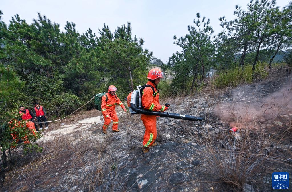 3月16日,道场乡综合森林火灾应急救援队队员在开展森林防火应急演练。