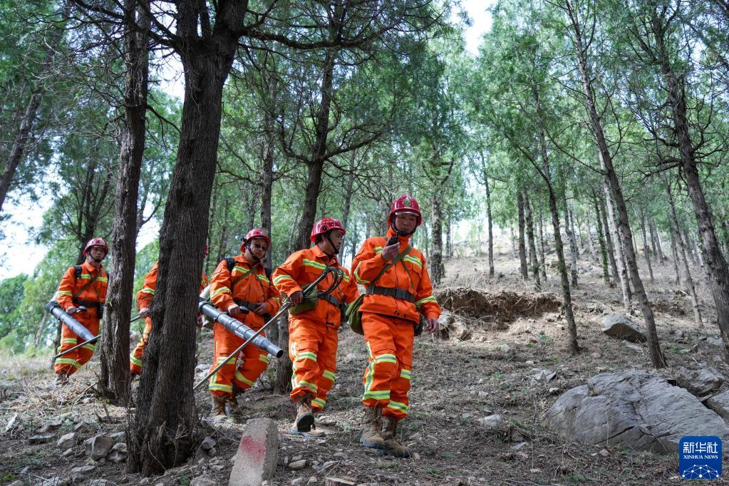 3月15日,长清区国有莲台山林场防火中队队员在林区巡护。
