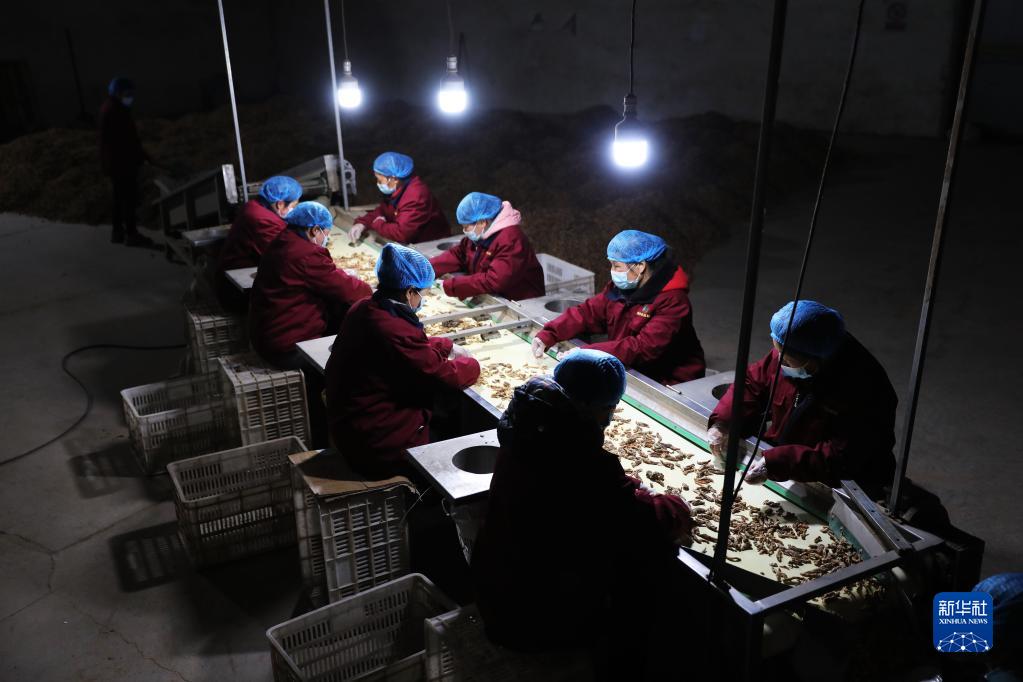 3月16日,在河南省武陟县一家怀药种植专业合作社,工人在分拣出口韩国的怀地黄。
