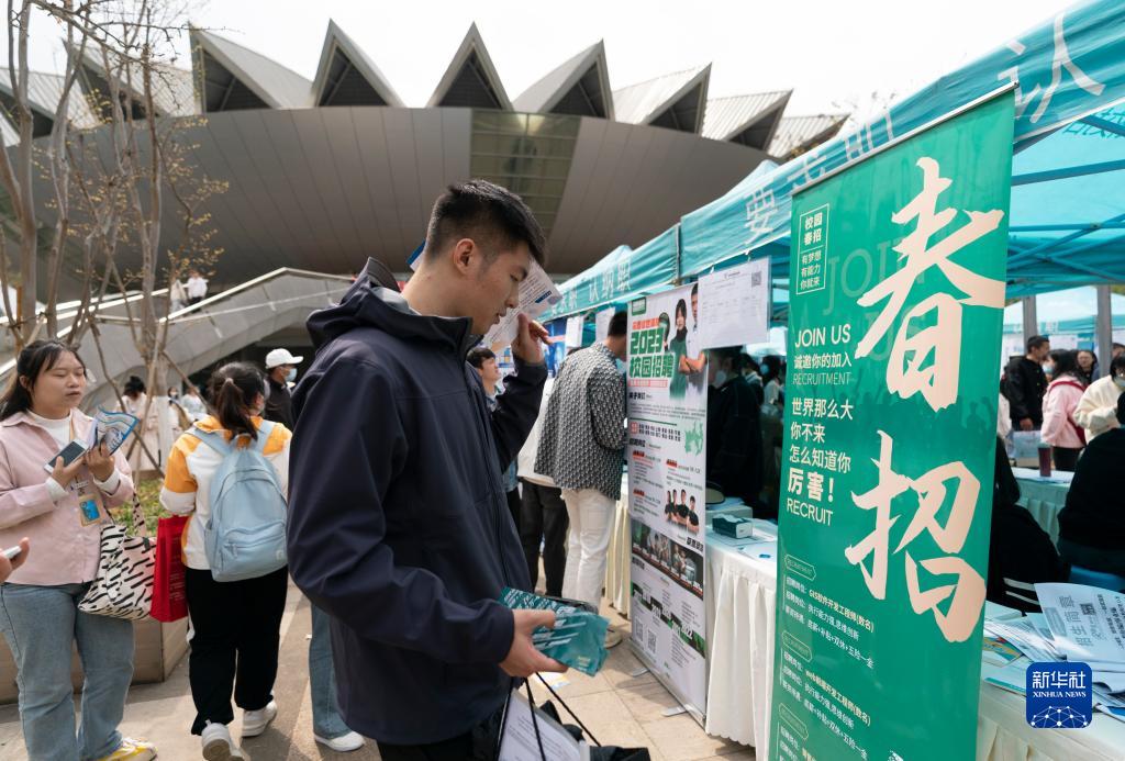 3月16日,一名求职者在云南师范大学呈贡主校区校园招聘会上查看招聘海报。