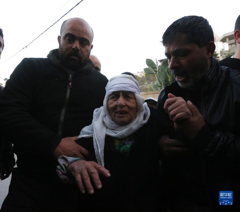 3月16日,在约旦河西岸北部城市杰宁,遇难者亲属在葬礼上哭泣。