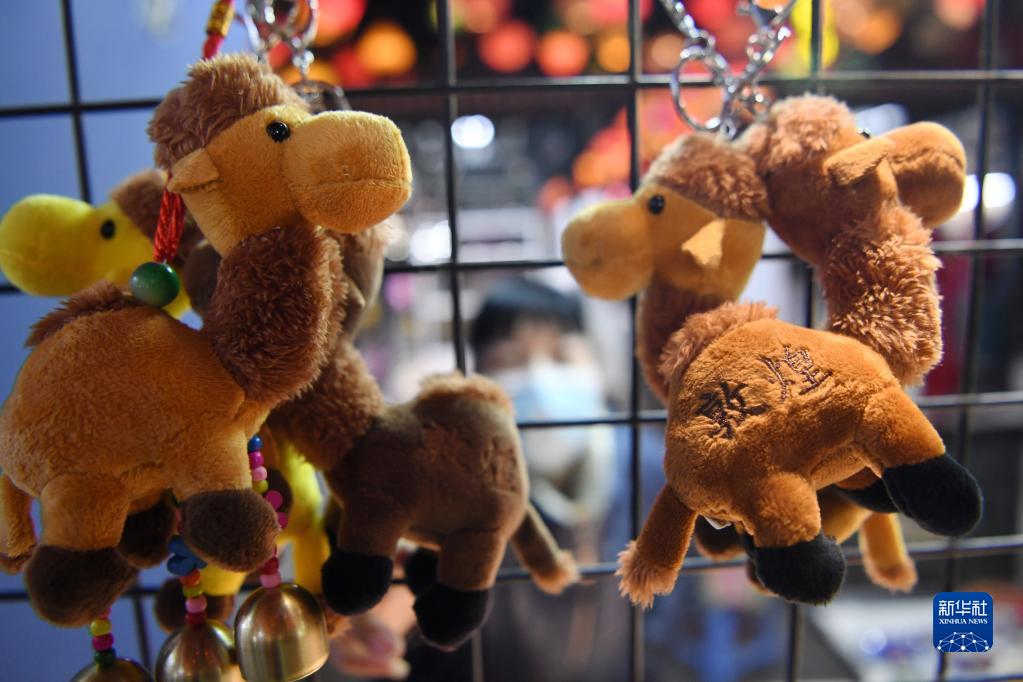 游客在敦煌夜市选购文创产品(3月16日摄)。