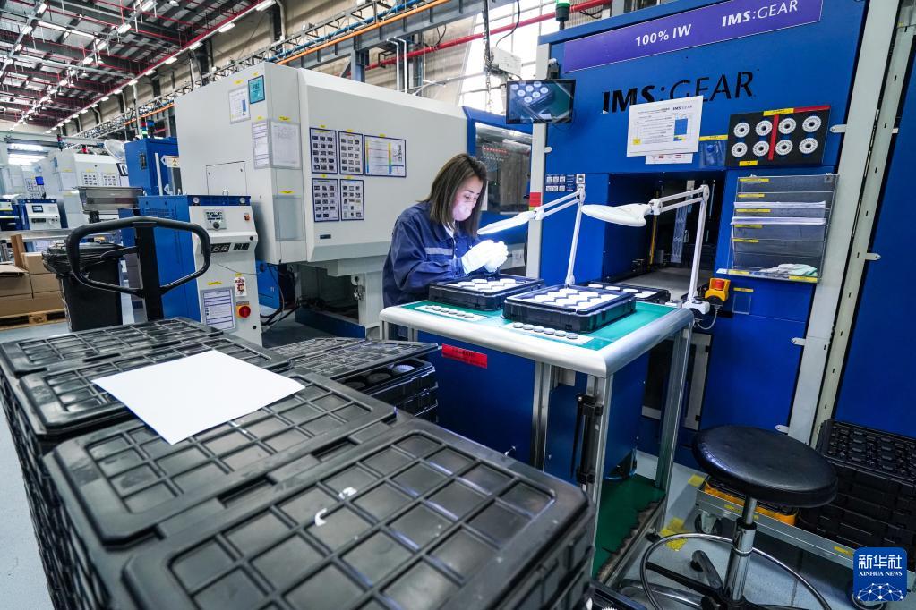 工人在位于太仓市高新区的亿迈齿轮(太仓)有限公司生产车间内进行加工作业(3月14日摄)。