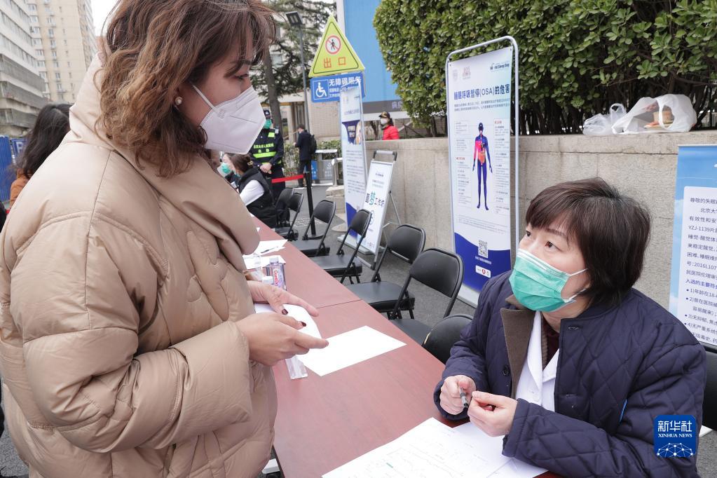3月17日,在全民睡眠公益系列活动上,北京大学人民医院医生为前来咨询的市民义诊。
