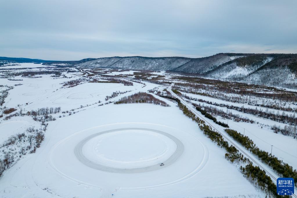 3月17日,在漠河红河谷寒地试车基地,车辆在进行寒区试验(无人机照片)。