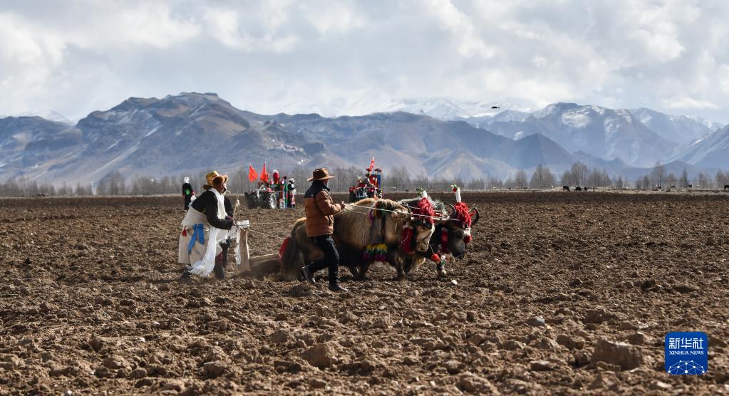 在西藏林周县强嘎村的春耕仪式上,古老的“二牛抬杠”耕作方式已仅具象征意义(3月16日摄)。