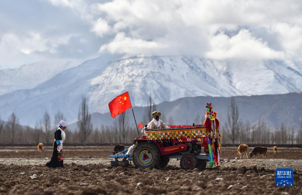 西藏拉萨市林周县强嘎村的春耕仪式现场(3月16日摄)。