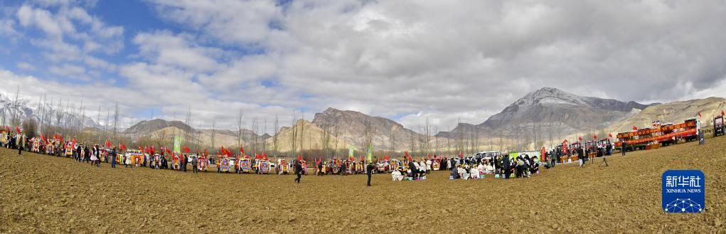 在西藏林周县强嘎村的春耕仪式上,农业机械集体亮相(3月16日摄)。