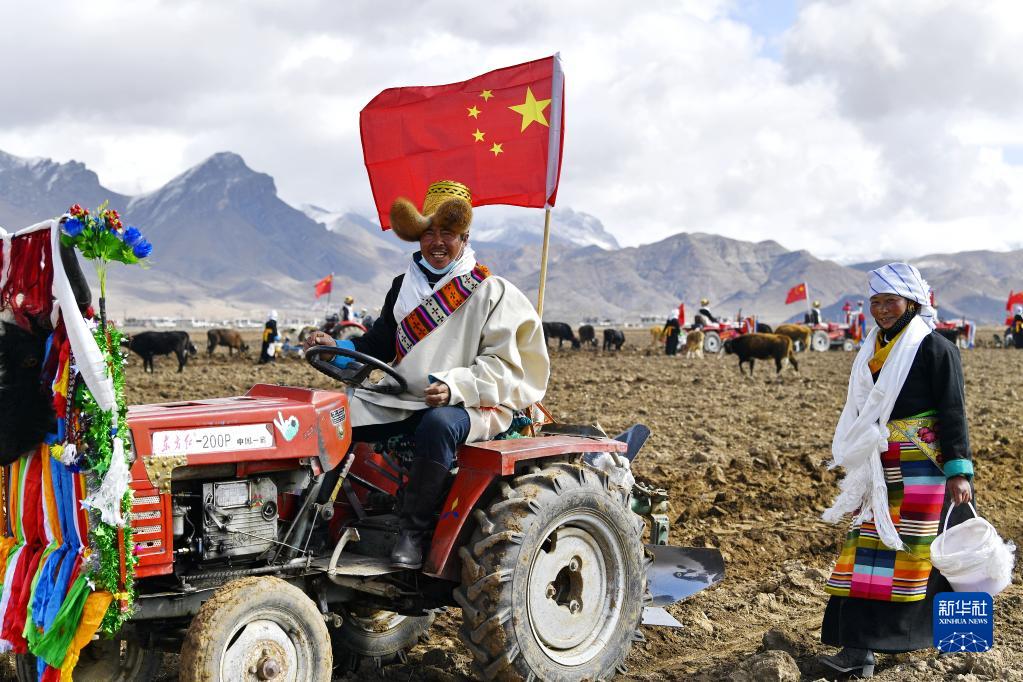 西藏拉萨市林周县强嘎村的春耕仪式现场(3月16日摄)。