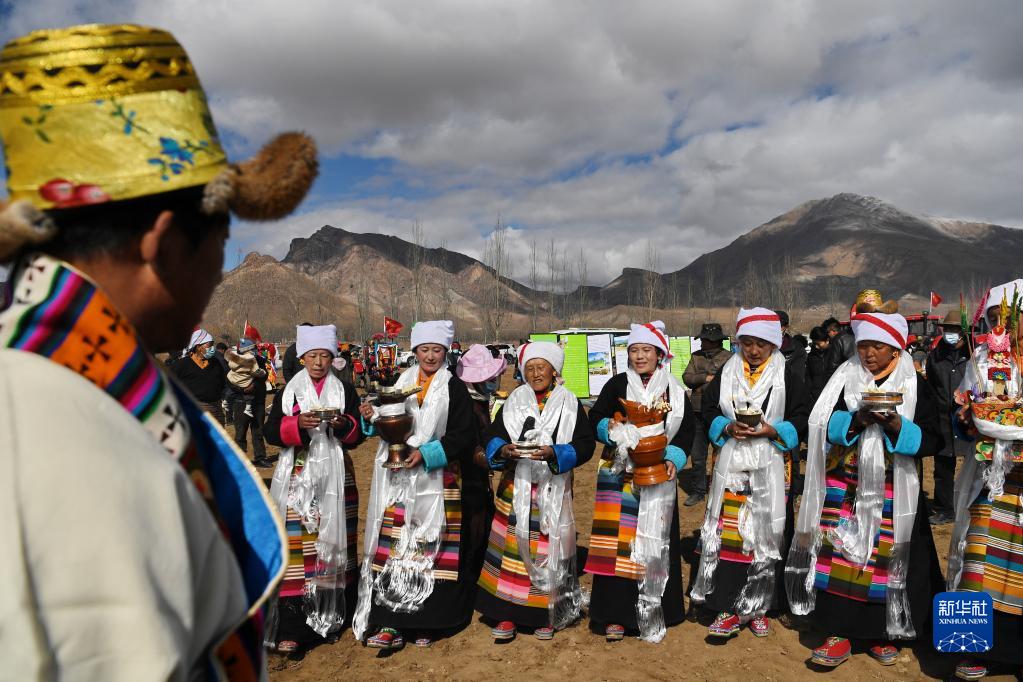 西藏林周县强嘎村的春耕仪式现场(3月16日摄)。