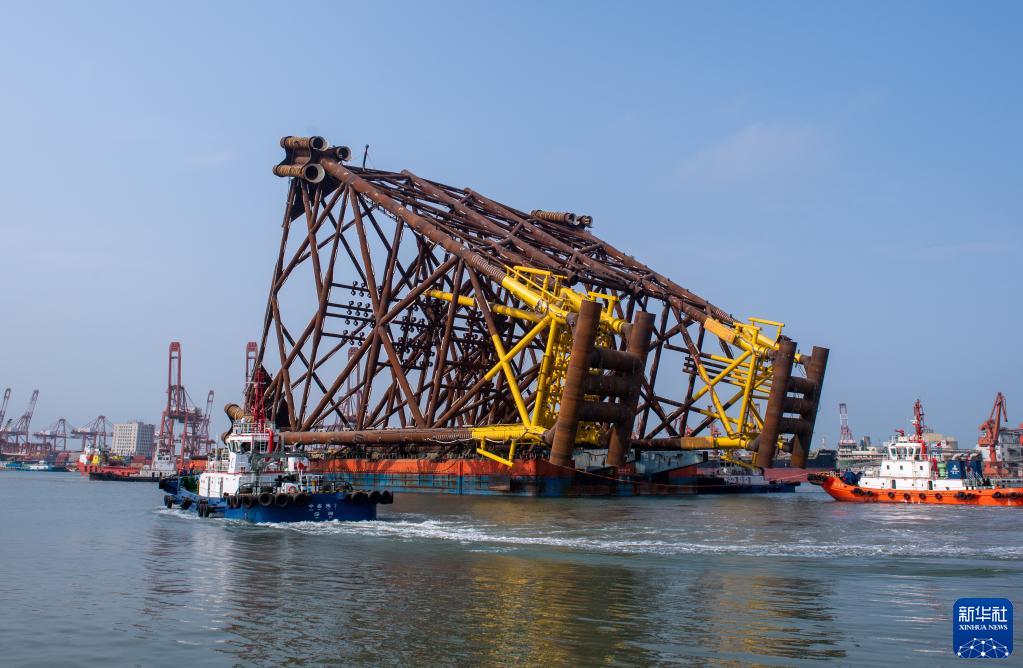 3月17日,在深圳赤湾海洋工程码头,“海洋石油228”运输驳船搭载着恩平20-4平台导管架启航。