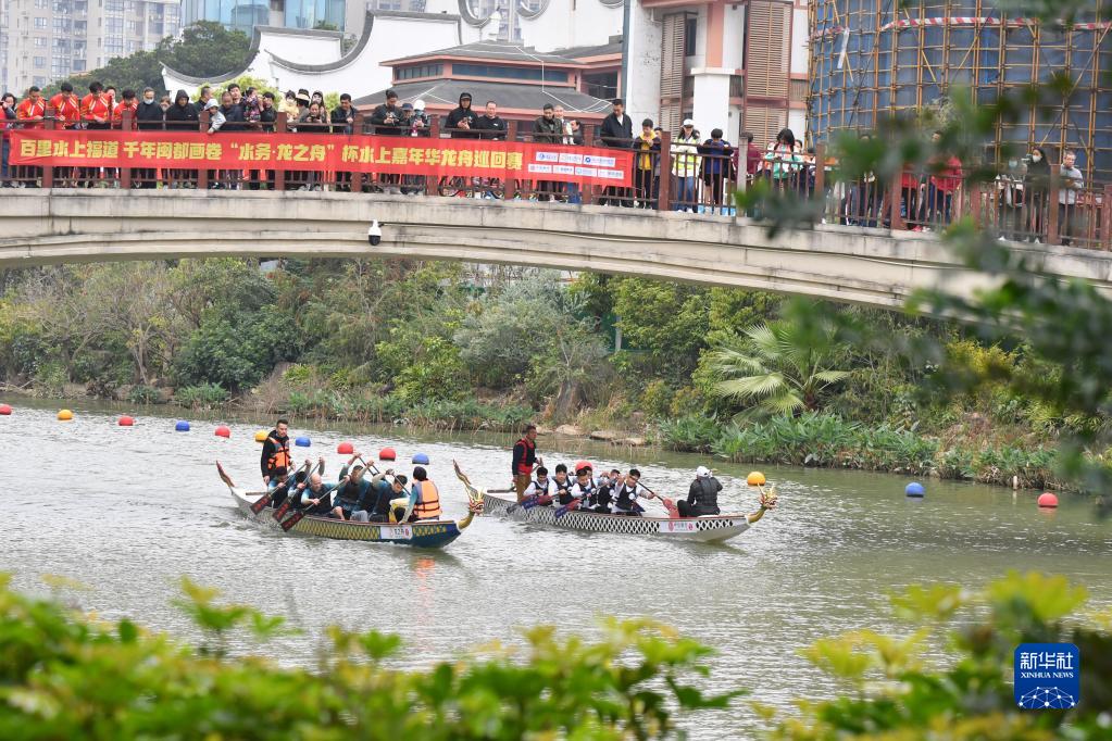 当日,来自福州各区县的12支龙舟队参加了在流花溪举行的“百里水上福道,千年闽都画卷”龙舟接力赛。近年来,福州市通过举办龙舟赛事、水上运动、寻福文化游等活动,打造内河文旅品牌,彰显福州“山水城市”的独特魅力。