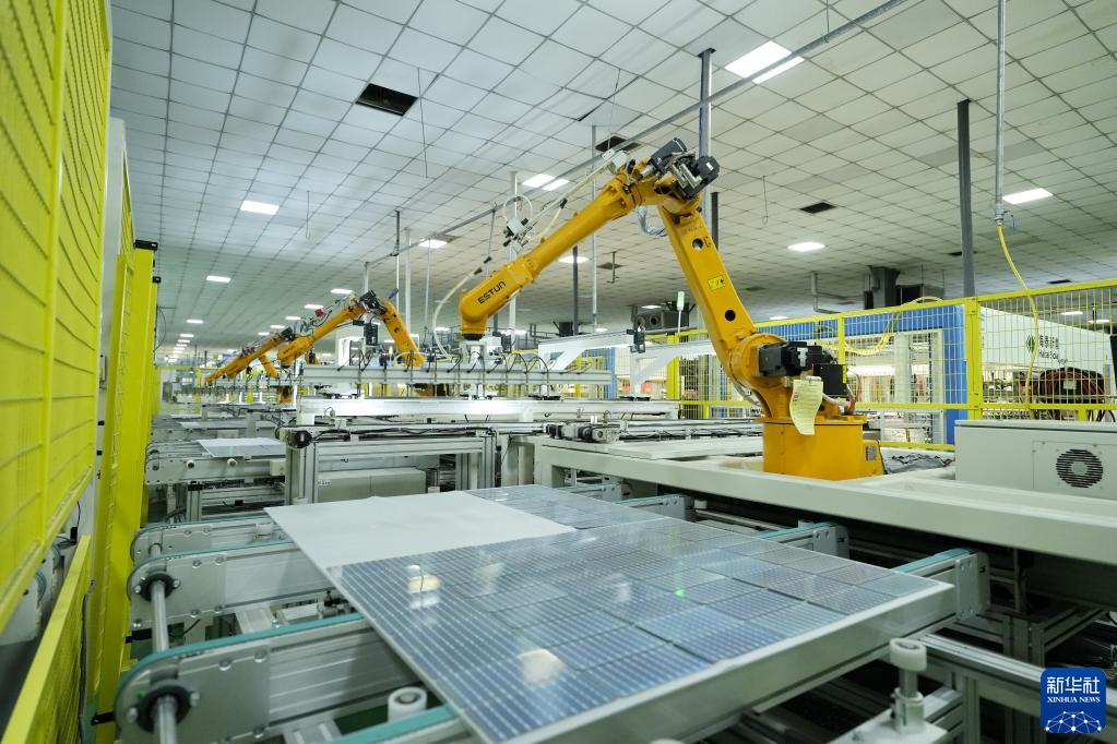 河北省玉田县一家光伏设备生产企业的自动化生产线(3月18日摄)。