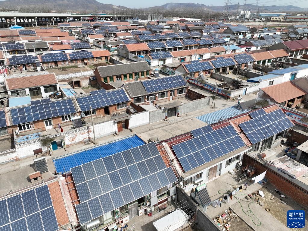 河北省玉田县孤树镇庄户村的屋顶分布式光伏面板(3月17日摄,无人机照片)。