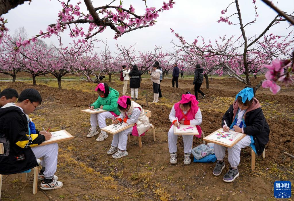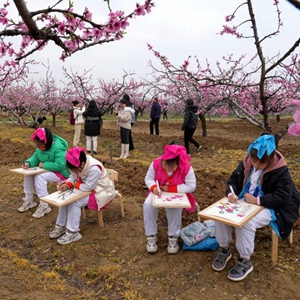 3月18日,小朋友在全椒县二郎口镇浦北村桃园写生。