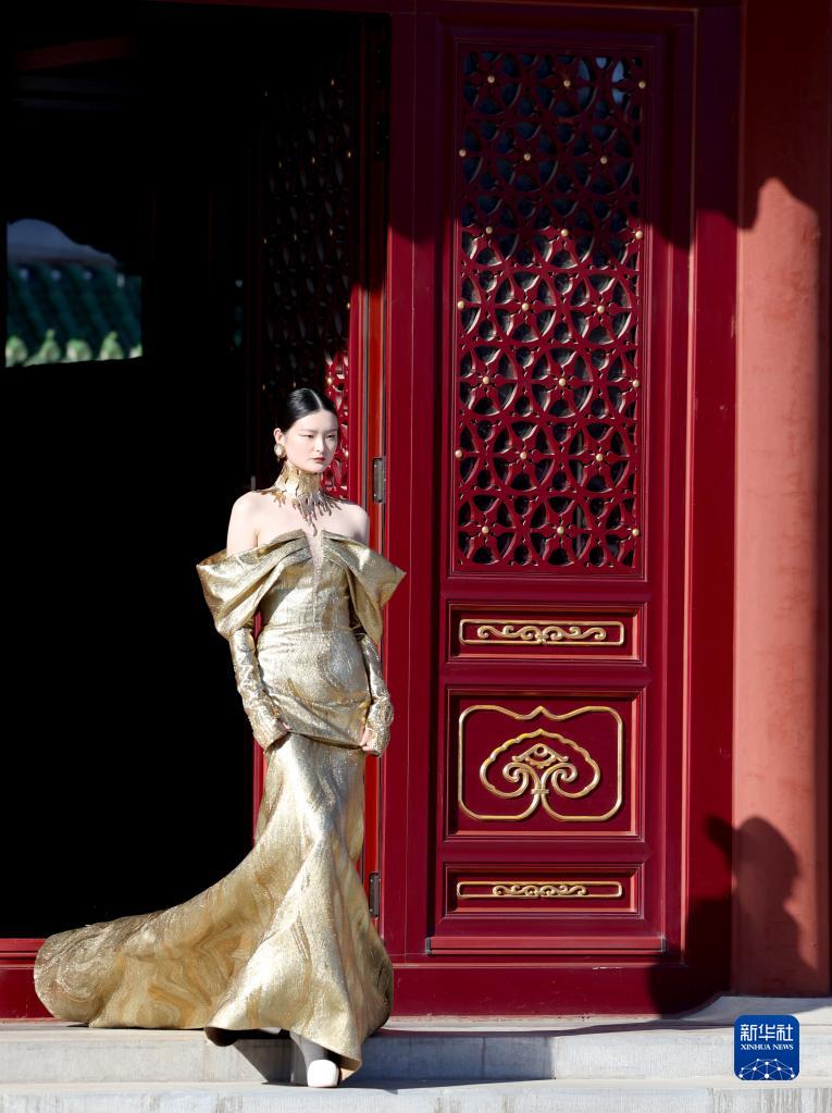 3月18日,模特在展示知名时装设计师熊英设计的具有非遗元素的时装。