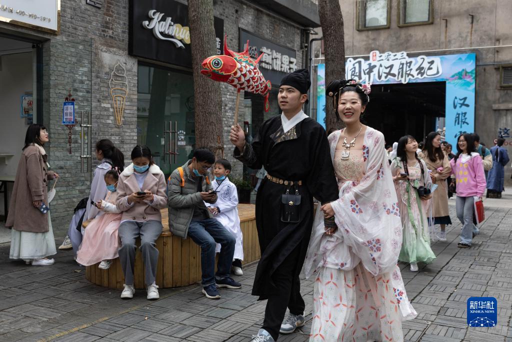 当日,为期三天的2023年中华民族服饰展演暨阆中汉服纪在四川省阆中古城举行,全国各地传统服饰爱好者齐聚阆中古城,穿汉服、游古城,“以服会友”。