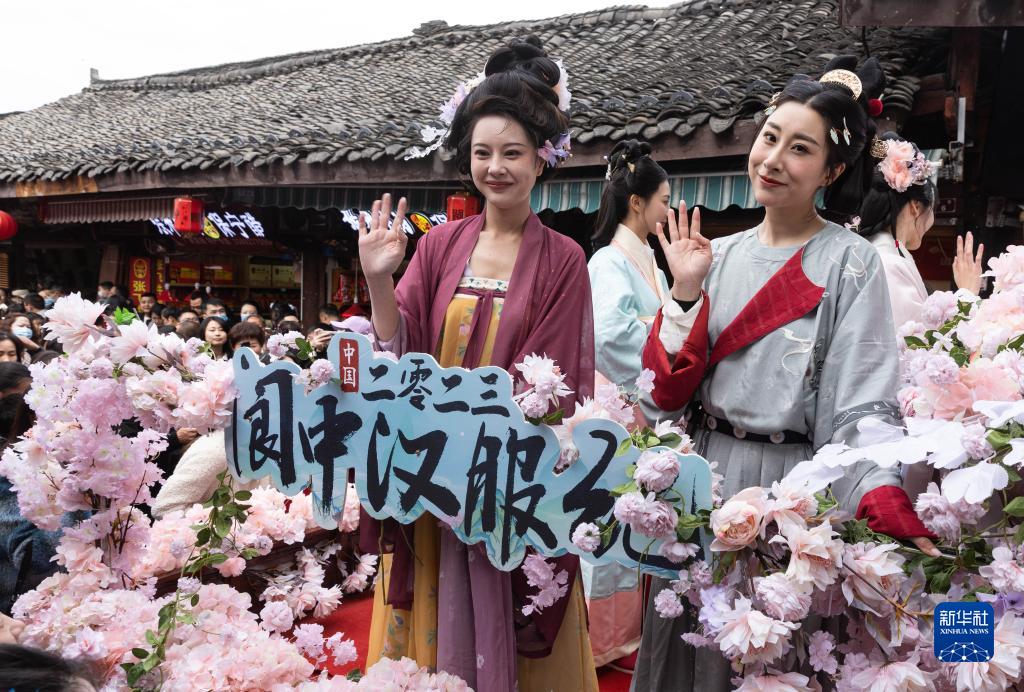 当日,为期三天的2023年中华民族服饰展演暨阆中汉服纪在四川省阆中古城举行,全国各地传统服饰爱好者齐聚阆中古城,穿汉服、游古城,“以服会友”。
