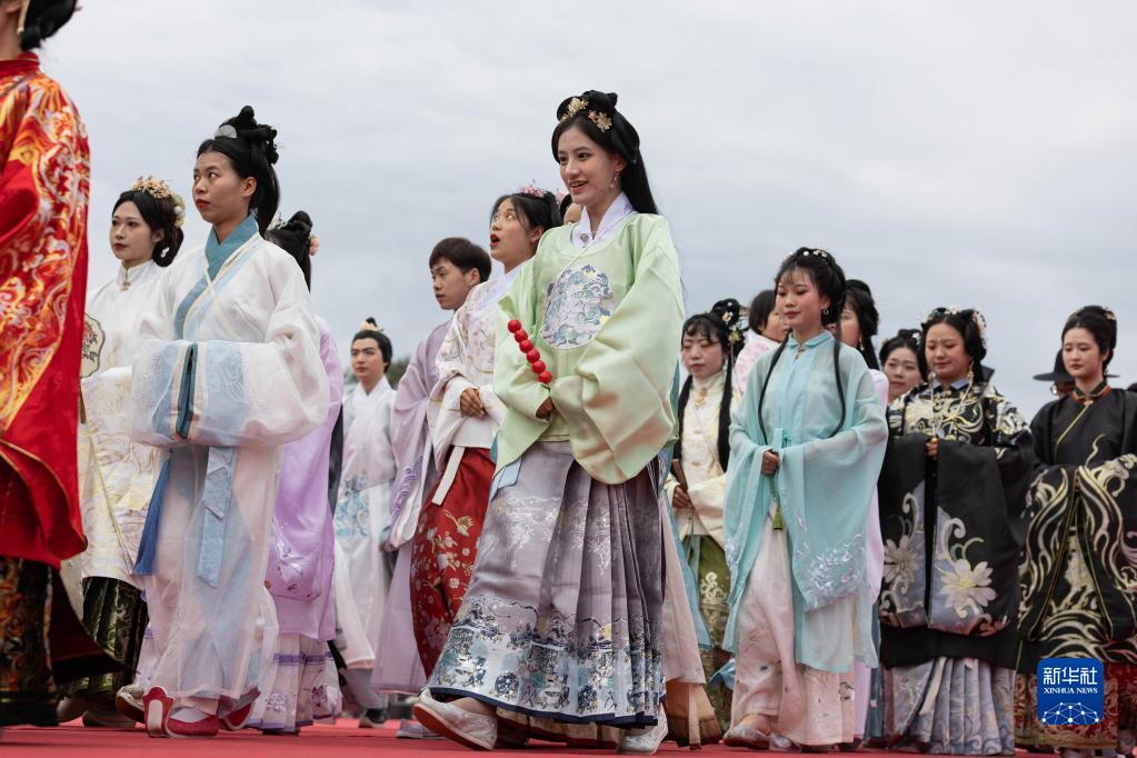 当日,为期三天的2023年中华民族服饰展演暨阆中汉服纪在四川省阆中古城举行,全国各地传统服饰爱好者齐聚阆中古城,穿汉服、游古城,“以服会友”。