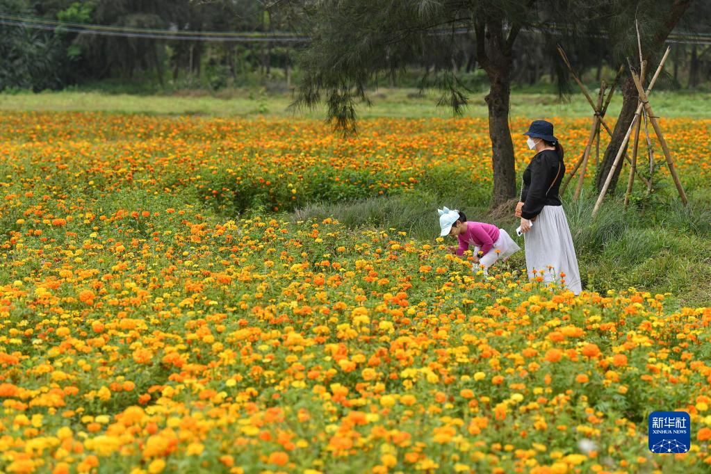 近日,海南省文昌市花舞田园乡村文化旅游区鲜花盛开,吸引游客前来踏青游玩,带动春日消费。