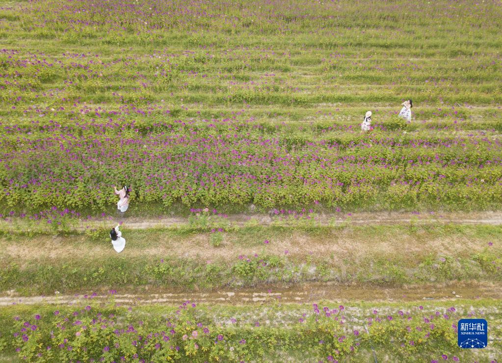 近日,海南省文昌市花舞田园乡村文化旅游区鲜花盛开,吸引游客前来踏青游玩,带动春日消费。