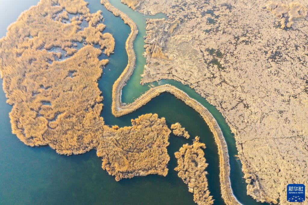 春季的新疆博斯腾湖一景(3月18日摄,无人机照片)。